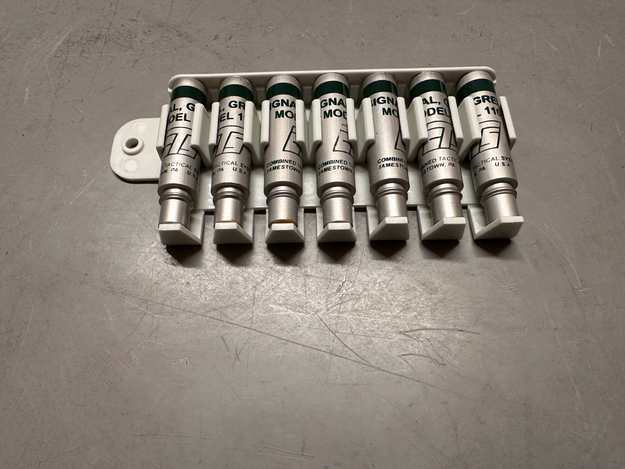 Based on US Navy design, these pen flare signals are extremely rugged, portable and reliable. These CTS signal flare are lightweight and compact, they consist of a 7 or 14 colored signal flares. Used as a distress signal or as a warning munition to approaching vehicles and persons.